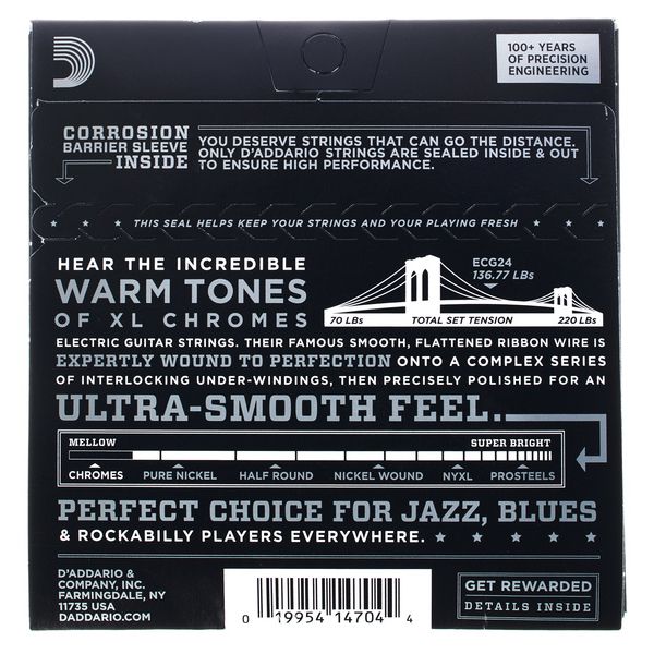 D’Addario ECG24 XL Chromes Electric Guitar Strings – 11-50 – Jazz Light