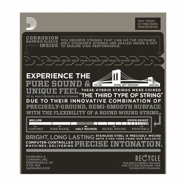 D'Addario EHR370 XL Half Rounds Electric Guitar Strings - 11-49 - Medium