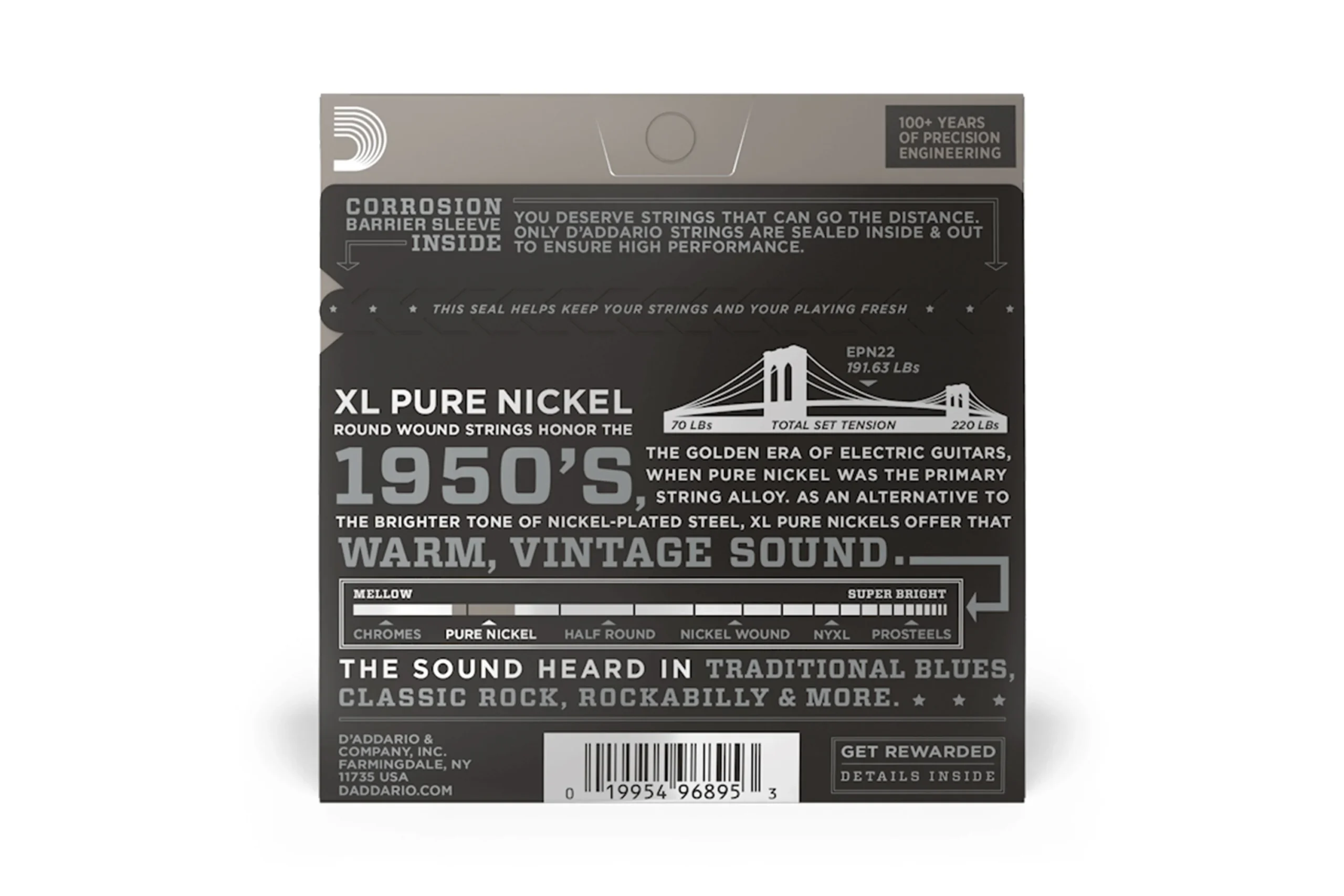 D’Addario EPN22 Pure Nickel Electric Guitar Strings – .013-.056 Jazz Medium