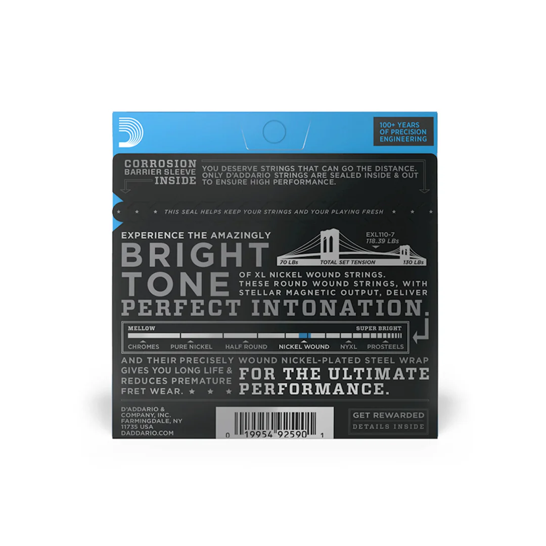 D’Addario EXL110-7 XL Nickel Wound Electric Guitar Strings – .010-.059 Regular Light 7-string