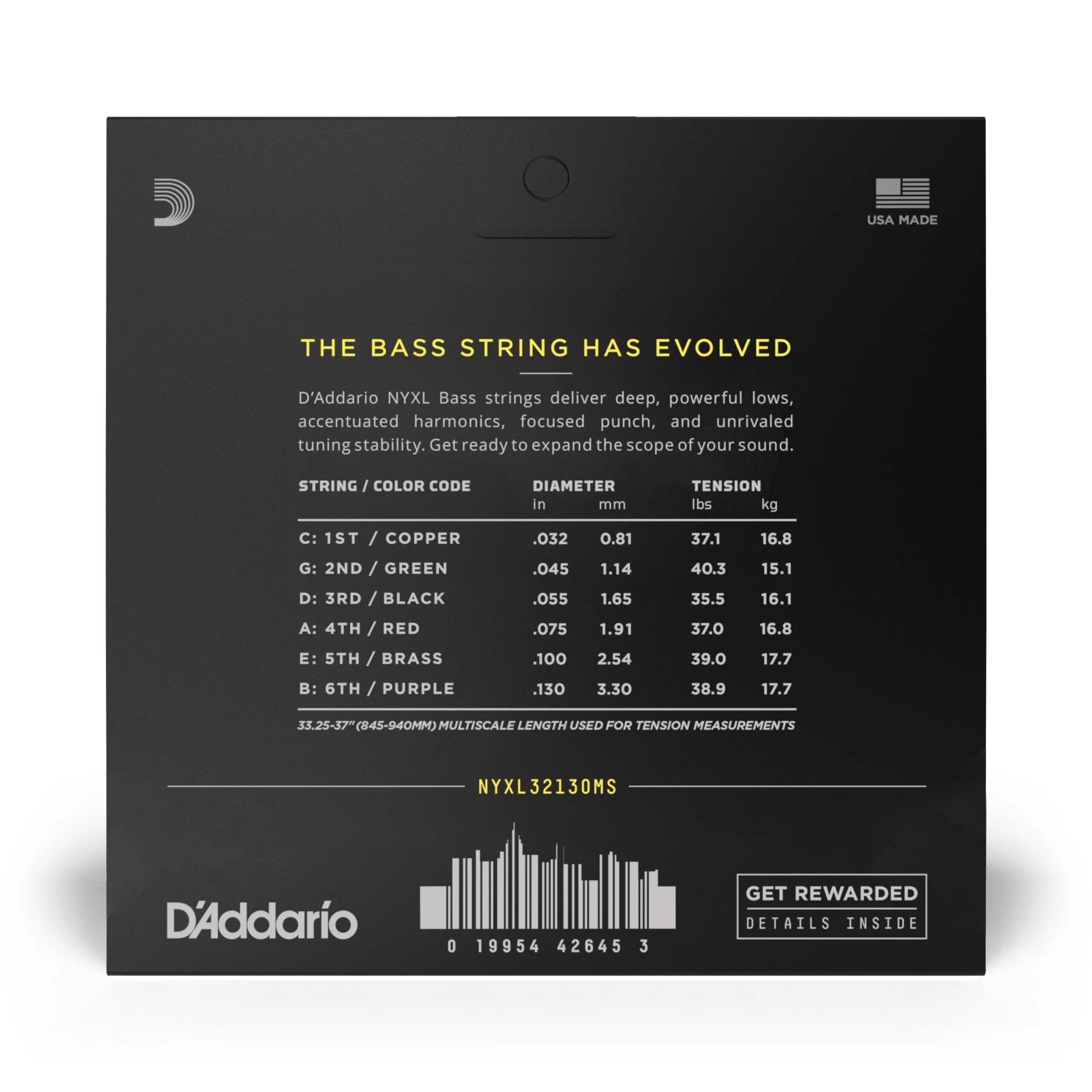 D’Addario NYXL32130MS NYXL Multi-scale 6-string Bass Strings – .032-.130