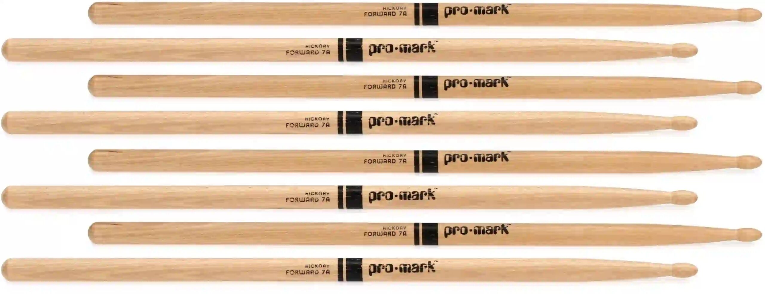 Promark Hickory Drumsticks – 7A – Wood Tip – 4-pack